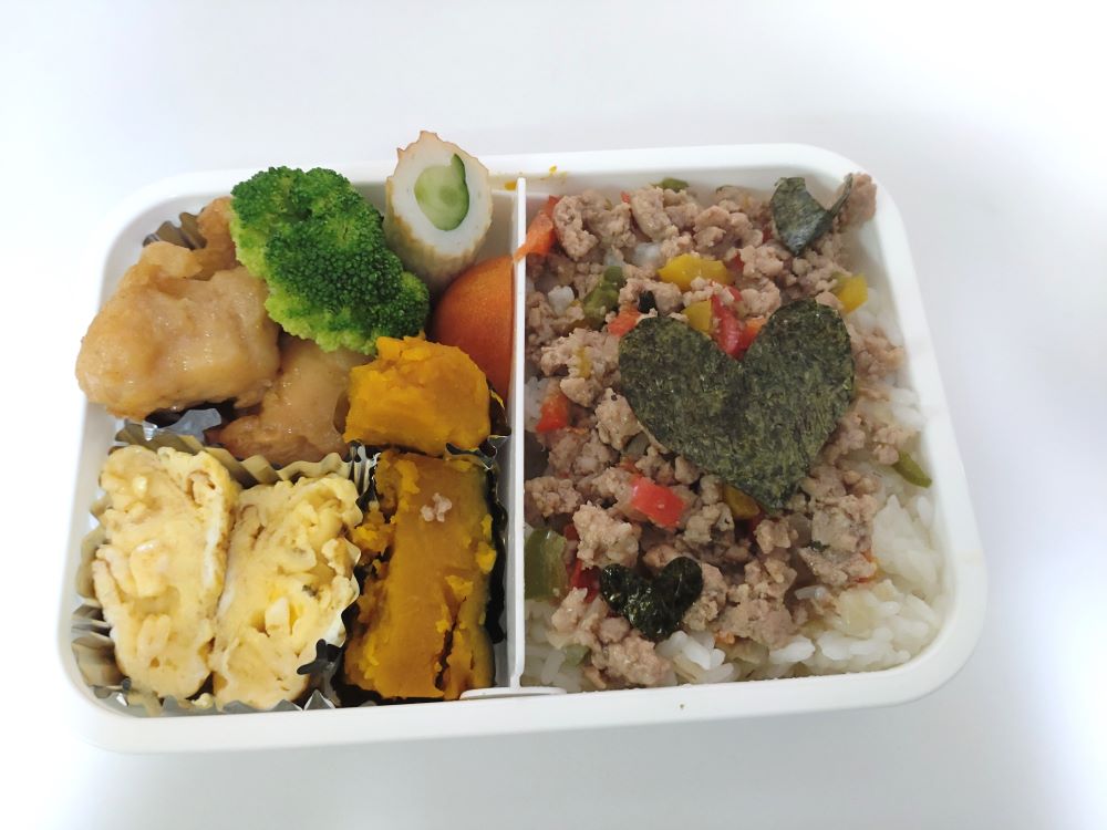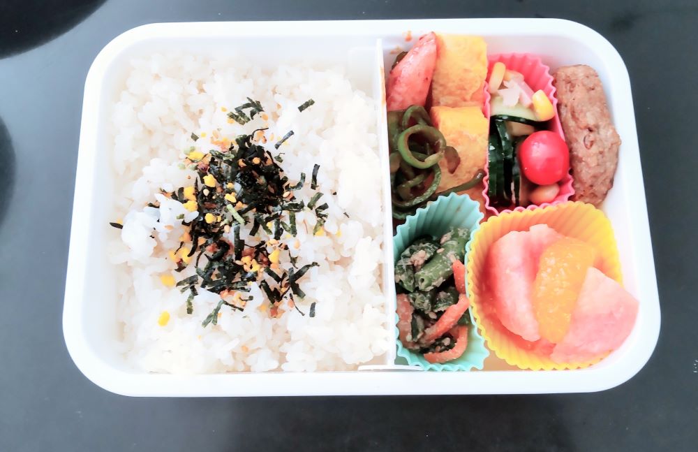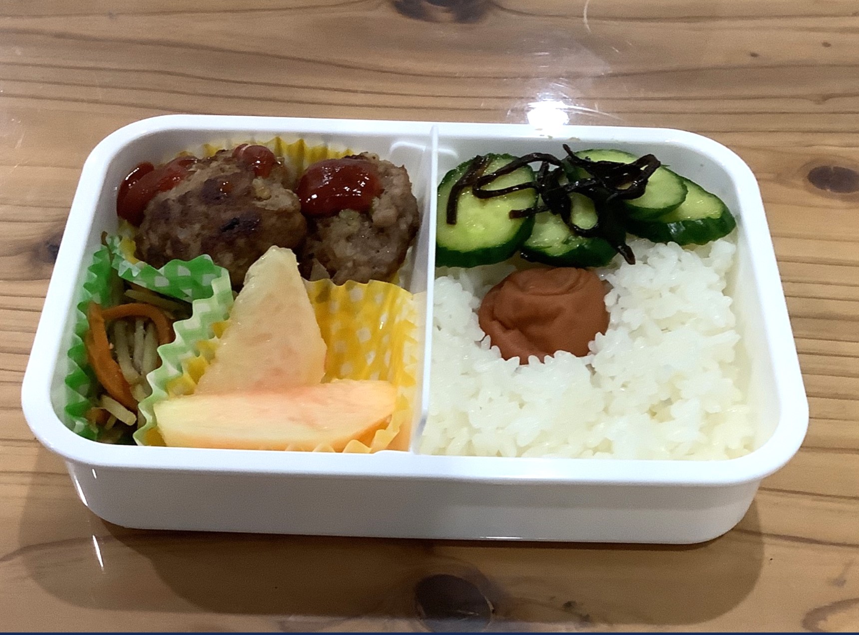 😊:献立から自分で考えて弁当作りをしたのは初めてだったけれど、最後まで予定通り作ることができて頑張りました。