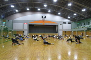 FSAダンススクールより先生お二人をお招きし、まずはケガをしないようにストレッチで身体を温めます。